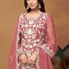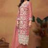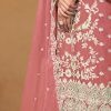 Pink embroidered Salwar Kameez Suit made with sequence and thread embroidered work. Comes with matching organza top, santoon pant and organza dupatta.