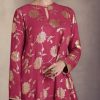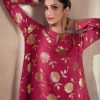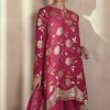 Pink embroidered sangeet sharara suit, made with thread zari and sequin work. Comes with matching top, bottom and dupatta.