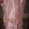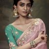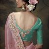 Pink embroidered wedding saree, embellished with sequin stone and thread work enhanced by fancy tassels. The saree comes with a matching contrast blouse.