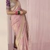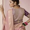 Pink embroidered wedding saree, embellished with sequin stone and thread work enhanced by fancy tassels. The saree comes with a matching contrast blouse.