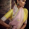 Pink fancy fabric embroidered wedding saree designed with thread and intricate border work. The saree comes with a matching blouse.