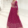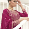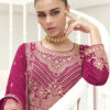 Pink floor length embroidered anarkali suit made with thread zari sequin work. Comes with matching top, bottom and dupatta.