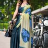 Pink floral print satin crepe saree crafted with all over print design. The saree comes with a matching unstitched blouse.