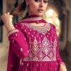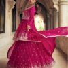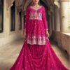 Pink georgette anarkali lehenga suit made with thread zari sequin work. Comes with matching top, skirt and dupatta.