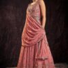 Pink georgette embroidered anarkali suit crafted with thread and sequins work. Comes with Top, bottom & dupatta.