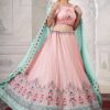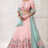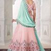 Pink georgette embroidered bridal lehenga choli, made with thread and stone work. Comes with matching organza silk lehenga, choli and net dupatta.