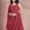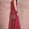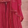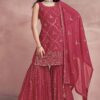Pink georgette embroidered sharara suit crafted with thread and sequins work. Comes with Top, bottom & dupatta.