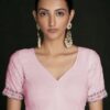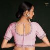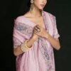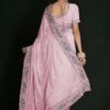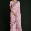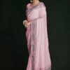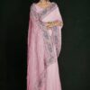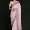 Pink georgette lucknowi embroidered wedding saree crafted with sequin & dori work. Comes with matching blouse.