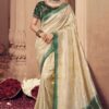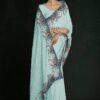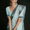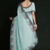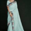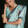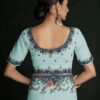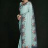Turquoise georgette lucknowi embroidered wedding saree crafted with sequin & dori work. Comes with matching blouse.