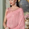 Pink georgette party wear saree made with intricate embroidery border work. The saree comes with a matching satin net blouse.