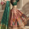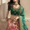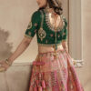 Pink & green banarasi silk bridal lehenga choli, crafted with heavy hand work silk zari, sequin and thread dori work. Comes with matching lehenga choli and dupatta.