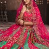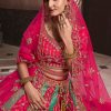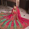 Pink & green banarasi silk heavy embroidered bridal lehenga choli, made with thread and sequin work. Comes with matching lehenga, choli and dupatta.