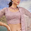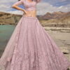 Pink heavily embellished bridal lehenga choli designed with hand made mirror, cutwork and zarkan heavy work. The outfit comes with a organza lehenga, choli and net dupatta.