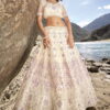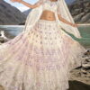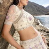 Off white heavily embellished bridal lehenga choli designed with hand made mirror, cutwork and zarkan heavy work. The outfit comes with a net lehenga, choli and dupatta.