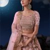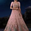 Pink heavy embroidered bridal lehenga choli, made with thread, sequins and zarkan work. Comes with matching lehenga, choli and net dupatta.