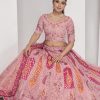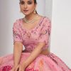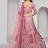 Pink heavy embroidered bridal lehenga choli, made with thread, sequins and zarkan work. Comes with matching soft net lehenga, choli and dupatta.