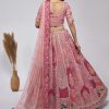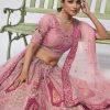 Pink heavy embroidered bridal lehenga choli, made with thread, sequins and zarkan work. Comes with matching soft net lehenga, choli and dupatta.