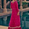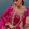 Pink lehenga suit with jacket, made with thread zari, and sequin work. Comes with matching top, bottom and jacket.