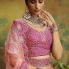 Pink moti & zarkan embroidered silk bridal lehenga choli, delicately made with, thread, sequin, stone and diamond work. Comes with a matching choli and net dupatta.