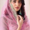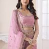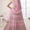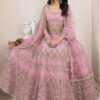 Pink net embroidered bridal lehenga choli, made with thread and zarkan work. Comes with matching organza silk lehenga, choli and net dupatta.