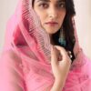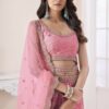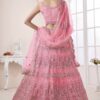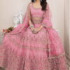 Pink net embroidered bridal lehenga choli, made with thread and zarkan work. Comes with matching organza silk lehenga, choli and net dupatta.