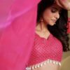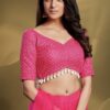 Pink net lehenga choli made with thread and sequins work. Comes with matching choli and dupatta.