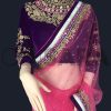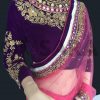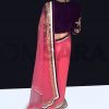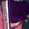 Pink Net Saree With Readymade Velvet Blouse, embroidery designed with, Zari, resham, booti, sequin embroidery work and patch border work. The saree comes with a readymade purple velvet blouse.