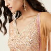 Pink & peach dola silk sangeet lehenga choli designed with digital print and intricate work on the choli. The outfit comes with a lehenga, choli and a dupatta.