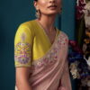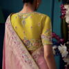 Pink pure silk wedding saree, designed with thread, zari work enhanced by fancy lace border. The saree comes with a contrast matching blouse.