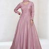 Pink silk floor length anarkali gown, made with sequence and embroidered work. Comes with georgette top and dupatta. Does not come with trouser.