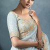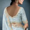 Powder blue embroidered wedding saree, embellished with sequin stone and thread work. The saree comes with a matching contrast blouse.