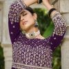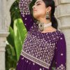 Purple anarkali style palazzo suit, made with thread work on the yoke and lower part of the kameez. Includes top, bottom and dupatta.
