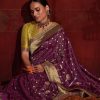 Purple banarasi silk embroidered wedding saree, designed with thread and intricate border work. The saree comes with a matching blouse.