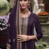 Purple chinon embroidered palazzo salwar suit, made with thread and sequin work at front and back of the kameez and pant. Includes top, bottom and dupatta.