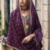 Purple chinon embroidered palazzo suit, made with thread and sequin work at front and back of the kameez and pant. Includes top, bottom and dupatta.