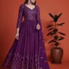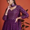Purple embroidered anarkali suit made with sequins and thread work. Comes with matching top, bottom and dupatta.