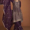Purple embroidered gharara style suit made with thread and zari patch border work. Comes with Top, bottom and dupatta.