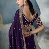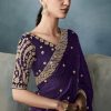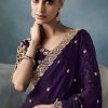 Purple embroidered wedding saree, embellished with sequin stone and thread work. The saree comes with a matching contrast blouse.