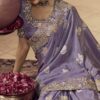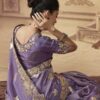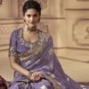 Purple fancy silk wedding party wear saree made with intricate embroidery border work. The saree comes with a matching blouse.