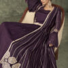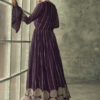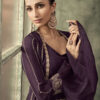 Purple floor length jacket style anarkali gown made with thread zari sequin work. Comes with matching top and jacket.