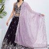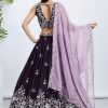 Purple floral sequinned wedding lehenga Choli in raw silk delicately made with, thread, sequin, stone and diamond work. Comes with a matching choli and dupatta.