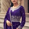 Purple georgette anarkali lehenga suit made with thread zari sequin work. Comes with matching top, skirt and dupatta.