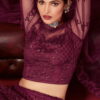 Purple net bridal lehenga choli, designed with sequin, zari work, hand embroidered paired with matching embroidered blouse and dupatta.