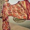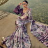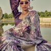 Purple print satin silk saree crafted with all over print. The saree comes with a matching blouse.
