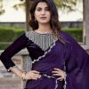 Purple satin silk chiffon party wear saree made with intricate embroidery border work. The saree comes with a matching faux velvet blouse.