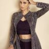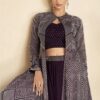 Purple silk jacket style Lehenga choli, made with thread zari sequin work. Comes with matching top, skirt and jacket.
