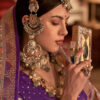 Purple traditional silk saree crafted with print work. The saree comes with a matching blouse.