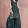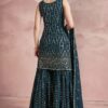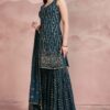 Rama blue georgette embroidered sharara suit crafted with thread and sequins work. Comes with Top, bottom & dupatta.