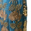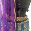 Ready To Wear Blue Handwork Lehenga Choli is handmade with zari and sequin work patterns all over the choli and lehenga. Choli Comes with a side zip closure, lehenga comes with zip and string tie closure and has fitted cut with flare comes with a net dupatta. model piece reduced to clear with some satin defects.