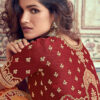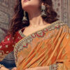 Red and orange silk embroidered Bridal Lehenga Choli crafted with heavy hand work silk zari, sequin and thread dori work. Comes with matching choli and dupatta.